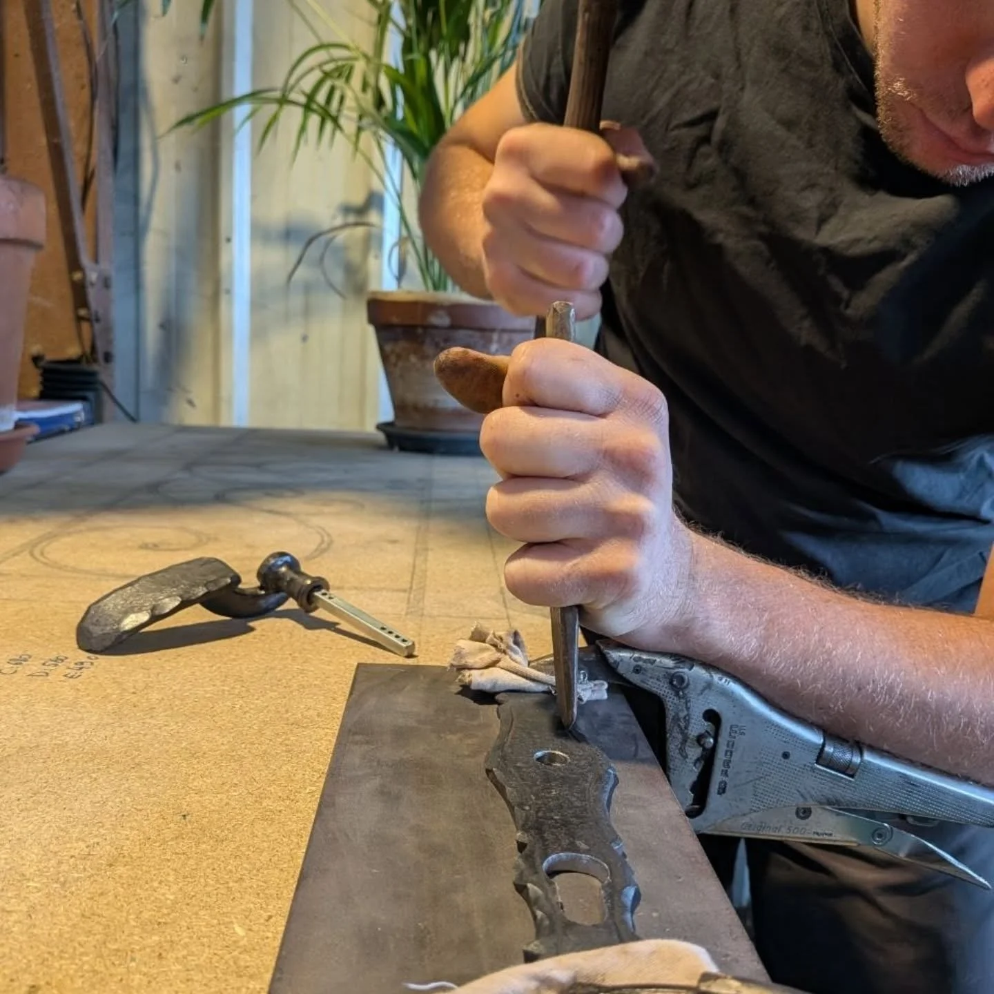 L’ensemble est en acier épaisseur 5mm, martelé et ciselé pour obtenir une belle déformation de matière